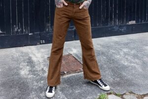 Broek Ribcord Flared Trousers Tan – engelse maten – katoen – unisex vintage Bygone Gent