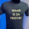 Tekst T-shirt Waar is da feestje – katoen – unisex – logo shirt Bygone Gent