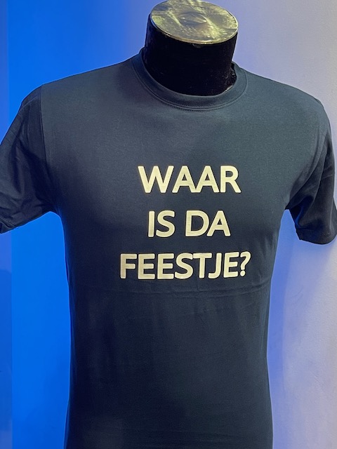 Tekst T-shirt 110 Waar is da feestje